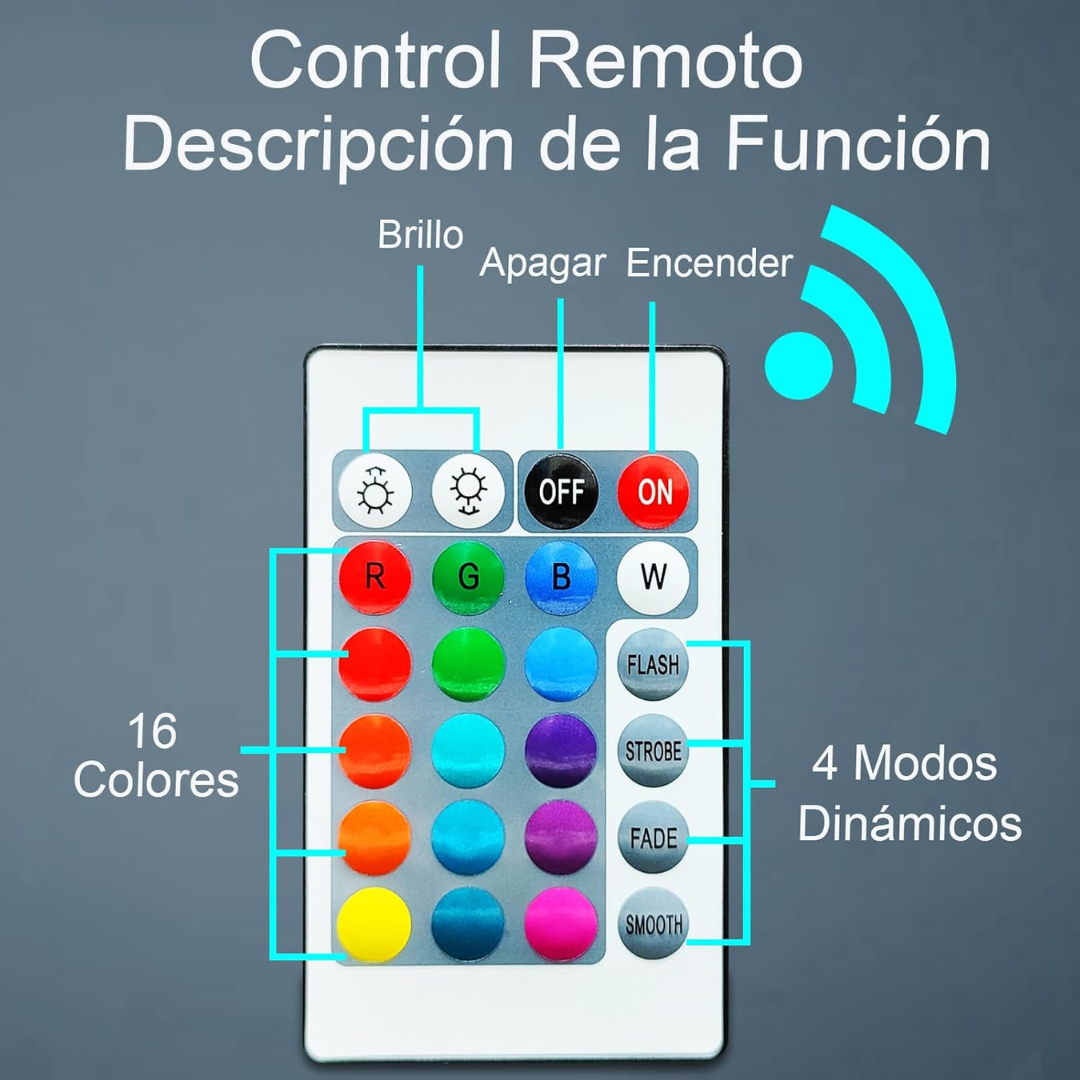 16 colores + control remoto incluido |
